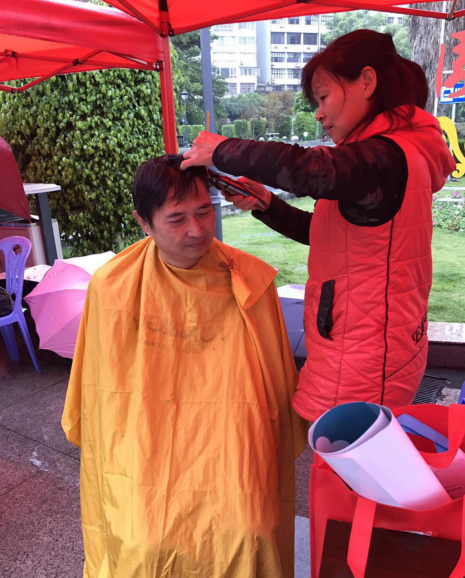 上午9:00盡管下著雨,志愿者的攤位前還是漸漸熱鬧起來,現(xiàn)場人頭攢動,義務的理發(fā)攤位更是人來人往、絡繹不絕。在兩個小時的便民服務中,志愿者們的熱情受到了市民的廣大好評。